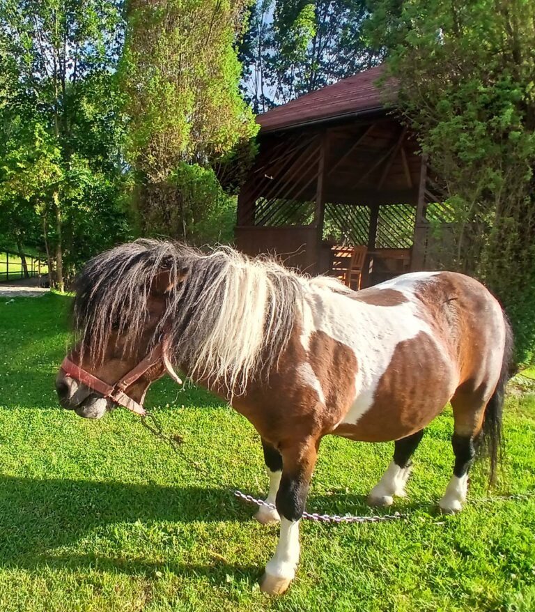 Nie sposób o nim nie wspomnieć – każdy, kto do nas przyjeżdża, prędzej czy później poznaje naszego kucyka. To spokojny, przyjazny i niezwykle towarzyski mieszkaniec, który od razu wzbudza sympatię.